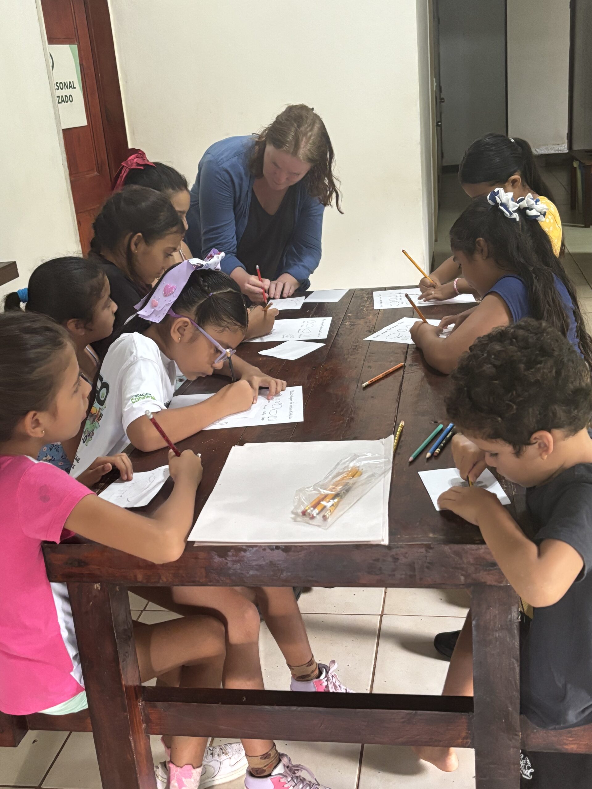 De biologen waarmee ik samenwerk verzorgen de uitleg, waarna ik met de kinderen aan de slag ga met tekenen.